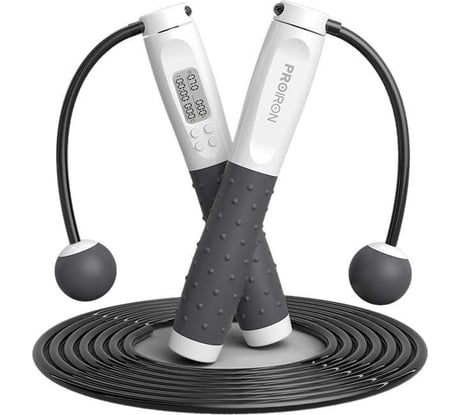 Эта скакалка идеальное соотношение цены и качества. Хорошая комплектация: чехол, ручки скакалки, трос для обычных прыжков и грузики для занятий без троса, маленькая отвёртка, батарейка в скакалке + ещё одна батарейка в упаковке, полная инструкция на русском языке. Есть все базовые счётчики для занятий. Таймер времени, количество прыжков, количество калорий. За эту небольшую стоимость отличный вариант.