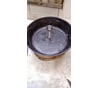 Поверхности шероховатые, пришлось пройтись болгаркой со шкуркой. Выступающие шероховатости сгладились. В центре отверстие 6 мм, состоящее как бы из цилиндра 12 мм и конуса. Идеально подошёл нержавеющие винт М6 с потайной головкой, вставленный снаружи и шайба с гайкой М6 внутри. На конец винта навинтил рым-гайку М6 в качестве ручки (всё нержа). Овощи запеклись нормально, бульон не протёк. Купил ещё нерж. шпильку на случай, если надо будет подвесить.