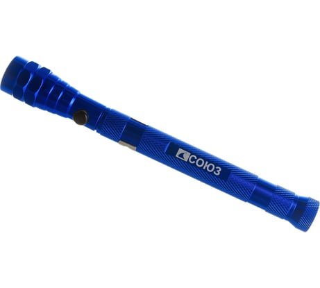 алюминиевый корпус, 3 светодиода, в комплекте 4 батарейки типа LR44, выдвигающийся корпус с 17.5 см до 57 см примерно. магниты с обеих сторон фонарика
