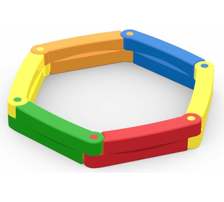 Покупали на дачу в качестве песочницы 6 элементов разного цвета. Можно придать любую форму, но почему то мы выстроили круг шестигранник. Песку влезло много. Удобная штука. А главное почти вечная. Не ржавеет, не гниет, не мокнет. Когда понадобится просто разберем и в сарай закинем, а потом снова соберем, на следующий год. Производитель молодец, здорово придумано.