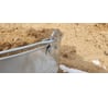 Петли для ручки не приварены, а приклепаны, что увеличивает стойкость соединения при деформации этого места при переноске тяжелых сыпучих материалов.