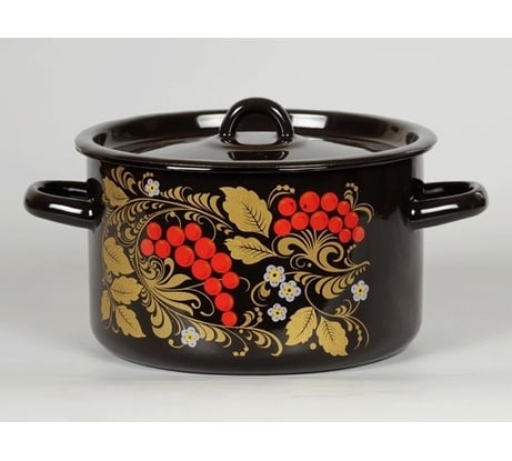 Классная мини-кастрюля, со стальной кольцевой ручкой на крышке (как вечно качественные ручки на советских эмалированных кастрюлях). Узор нанесен с обоих сторон. Размер крышки 18 см, высота кастрюльки изнутри - 12 см. Кому важно, цвет внутренней эмали - сильного черного цвета.