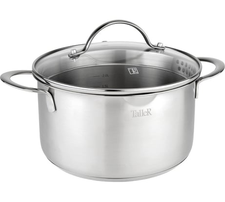 Классная кастрюля, со сливом в крышке. Дно толстое, не темнеет. TALLER держит марку.