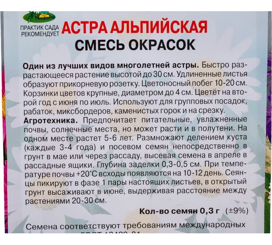 Астра альпийская Агрохолдинг ПОИСК Голубая 0,04гр 140662