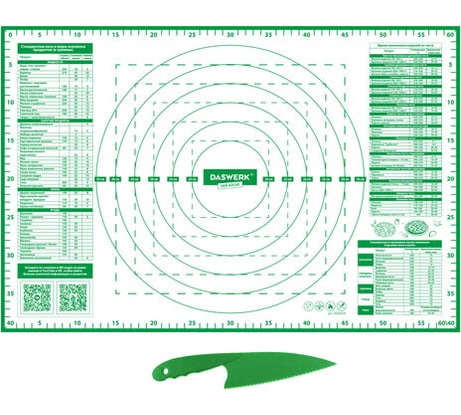Прекрасный коврик для выпечки! 🥳 Очень удобно работать, тесто не прилипает, а разметка помогает раскатать всё ровно. Пластиковый нож в комплекте тоже порадовал! Удобно мыть и хранить. Рекомендую всем, кто любит готовить! 🍰