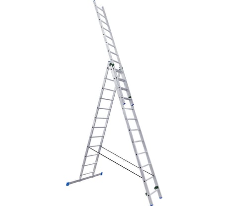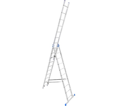 Отличная лестница. Покупал для дачи. Поправлял сливы на крыше на высоте 4 м. Работать комфортно, лестница не шатается при моих 78 кг, выдвигал третью секцию со стремянки, держит отлично. Хорошо, что ступени не узкие, ноги не режут, ширина тоже отличная стоять удобно. Лестница очень легкая, так что перемещать и раскладывать комфортно.