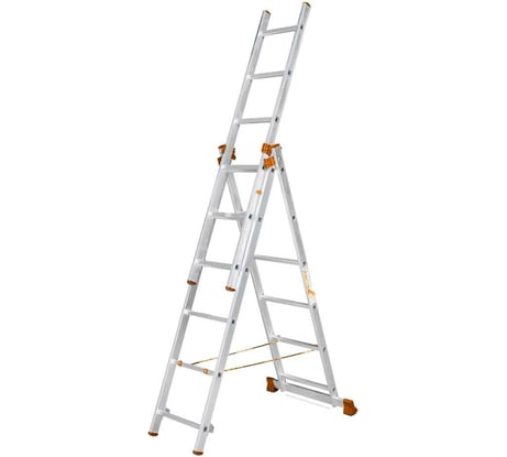 Очень неудобная. Вместо нормальных стропов продетая сквозь ступени ерунда, постоянно запутывающаяся. Стремянкой крайне проблематично ставить, зацеп крайне неудобный, одному не поставить, приходится в горизонтальном положении собирать, а потом поднимать вдвоём. Хлипкая конструкция. Под наклейкой Промышленник, другая наклейка. Нижняя планка толщиной по ощущениям 0,5 мм толщиной погнулась. Стопоры болтаются. р