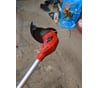 Нет шнура ! Это супер ! Есть скоба ограничитель по ней видно ход лески что бы не повредить забор , грядки , растения .