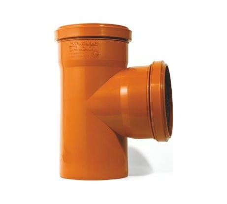 Прочный, гладкий тройник из пластика для внешней канализации. Прокладку внутри требуется смочить, чтобы легче вошла.