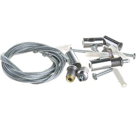 В этом комплекте всё есть, чтобы установить тросики для панели. Здесь 4 тросика и все крепежи идут. Чтобы всё сделать, всё имеется в наборе. Нагрузку держит, правда, 3 кг. не пробовал.
