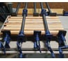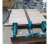 Взял струбцины, в леруа в сантехническом отделе купил трубу 3/4, сразу склеил 2 доски. Очень хорошо стягивают. Трубы покрасил гламурно, потому что они в говне и постоянно пачкаются.