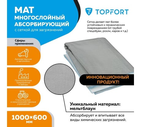 Отзыв Многослойный абсорбирующий мат для масла и загрязнений Topfort 1000x600 мм 1740620