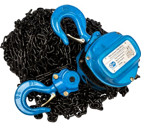 Хорошая таль, работает на оценку отлично, цепь очень мощная и прочная. Крюк идет с предохранительной скобой.