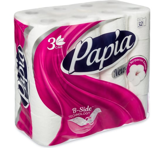 Туалетная бумага PAPIA Белая 3 слоя, 32 рулона 1015031444 1015031484