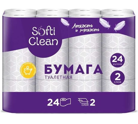 Отзыв Туалетная бумага Softi Clean 2сл, 24 шт, 15.31м, с втулкой, бел 494309