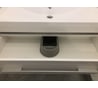 Фурнитура среднего качества, столешница опирается только на боковые поверхности тумбы. Сразу хочу предупредить читателя, что я не профессиональный строитель, тумбу устанавливал в первый раз, самостоятельно. Соответственно сравнить мне не с чем и отзыв вероятно будет дилетантский, но всё же расскажу про пару моментов. Первое и самое основное, и чего вы не увидите на размещённых в сети демонстрационных фото - столешница (тоже Акванет, специально для этой модели тумбы) конструктивно опирается только на боковые стенки тумбы. В результате, после тестовой установки раковины обнаружил прогиб столешницы посередине. Сзади опора вообще не предусмотрена, а спереди она в сечении с верхнего края странной треугольной формы и установлена с большим зазором до столешницы, в результате чего качественно приклеить столешницу к ней не удастся. Как вышел из положения: сзади организовал дополнительную опору к стене, а спереди аккуратно извлёк опору и перевернул её чтобы треугольный скос оказался внизу. Саму опору прикрутил изнутри металлическими уголками к боковым стенкам, так как штапики вставить при установленной столешнице уже невозможно. Касательно фурнитуры и ящиков - петли показались не очень качественными, так как издают шум при движении, а дно ящиков это просто кусок оргалита прибитого скобками - для размещения чего-то весомого не годится. А так тумба красивая. Надеюсь послужит и не разбухнет через год, будет жаль потраченного времени. Прикладываю общее фото тумбы с столешницей и раковиной, фото моего дополнительного крепления в задней части и фото странной формы передней опоры и расстояния от столешницы до неё.