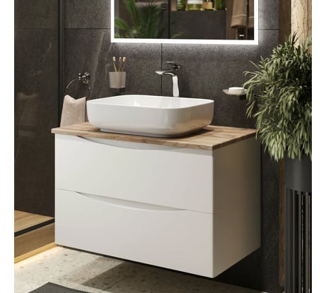 Тумба идеально подошла в нашу небольшую ванную. Сочетание цветов серый-белый - универсальное. Довольно вместительные ящики, положила туда мыло, зубную пасту и т.д. Довольна.
