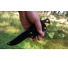 Точить пришлось, но зато после заточки претензий нет (с учетом его цены, конечно же). Слабая петля для подвешивания на ремень, оторвалась по заклепкам. Правда, уточню, я подвешивал не на поясной ремень, а на лямку, т.е. не вертикально, а боком (ну мне так надо было)