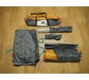 стальные колышки без заострения весом чуть ли не килограмм. среднюю дугу-перекладину не очень просто вставить: она толще основных и не гнется. Нельзя просто тканевую дверь закрыть: молния пристегивает ее к двери из сетки. Но это дело привычки. люверсы на ремнях по углам палатки вставлены чуть криво и кажутся не очень надежными. Но этот момент легко чинится при поломке. Длина колена каркаса 64см, что затруднит переноску палатки прицепленной к рюкзаку поперек.