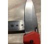 Удобная конструкция, эргономичная рукоятка. Раскладывается одной рукой и одной рукой, аккуратно, складывается. Удобная форма и длина клинка. Применяю при электромонтажных работах и просто по хозяйству в строительных делах. Существенный недостаток этого ножа - сталь клинка почти пластилин. Твердость всего 50HRC. Мало! Нож тупится достаточно быстро, правда так же быстро правится на мусате. Либо применяемая сталь дрянь, либо затермичен с нарушением технологии. У меня кухонники от 55HRC. Фото замера твердости на Роквеле прилагаю. Роквелл старенький, но абсолютно исправный. Имеется приличный набор калиброванных по твердости образцов (еще ГОСТ), проверяем, все точно. Параметры ножа: Вес 110гр Длина клинка 73мм Ширина клинка 25мм Толщина клинка в обухе 3мм