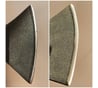 Заточка с завода классическая (вырезали, да фаску не сняли) - исправляется это за минуту на станке (прикладываю фото до и после). Точится легко, сталь звенит, зазубры после применения не появились [последнее фото]. В комплекте идёт резинка на лезвие Вывод: советую, низкая цена, высокое качество