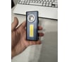 Красивый на вид. Отличный удобный форм-фактор. Алюминиевый корпус. Мощный основной светодиод. Очень мощный СОВ (освещает всю комнату). Встроенный аккумулятор с возможностью заряжать через кабель. Удобная прищепка с крючком. 2 мощных неодимовых магнита: снизу и на прищепке. В комплекте USB кабель для зарядки.