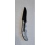 Классический складной нож, с клинком типа клип-поинт стилизованный под легендарную "лисичку". В советское время производился подпольным способом на заводах и очень ценился всеми рыбаками. Он был очень незаменим, когда надо было достать рыболовный крючок с наживкой, у случайно заглотившей его рыбы. И потрошить свежую рыбу для ухи таким ножом тоже было удобно. Нож достаточно тяжеловат. Видно, что он ручного изготовления, но сделан квалифицированными мастерами и достаточно аккуратно! Собран вместо винтов весь на заклёпках. Накладки на рукоятках светло-коричневые и при ярком свете они красиво переливаются перламутром. Накладки кроме того, что приклеены, дополнительно закреплены латунными заклёпками. Очень понравилось, что мастер в отверстие для темляка вставил трубку, чтобы отверстие не разболталось.