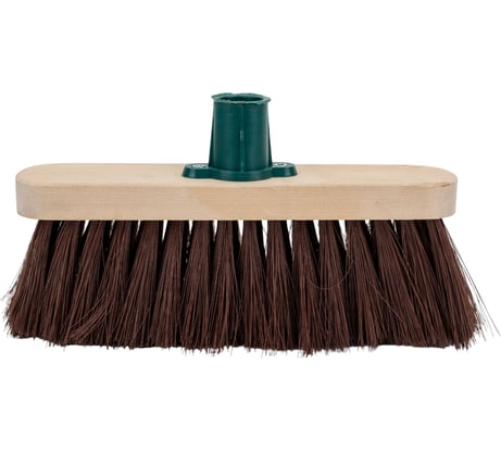 Данная щетка уже наиболее распространённых щёток на 5см, что при определенных условиях даёт ей преимущество. В моем случае я покупал её для домашней мастерской, где зачастую даже ширина щетки 22см еле проходит между ножками столов. Меня данный размер щетки вполне устроил. Щетина длинной 7см и имеет среднюю жесткость, плотное расположение щетины позволяет подметать даже очень мелкую пыль. Закреплена щетина в деревянном основании очень качественно (щетину испытал на выдергивание). Пластиковая втулка для крепления черенка имеет достаточную толщину для надежного соединения.