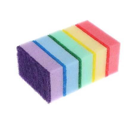 Казалось бы, губки как губки, -- но приятно, что абразивная сторона не тупо зелёная, а в каждом случае гармонирует с цветом поролона. Размер 98x60x30 мм.
