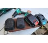 Отлично держит АКБ, хороший зажим, удобная ручка.