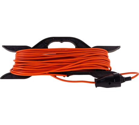 Длина. Яркий цвет, позволяющий проводу "не потеряться" в траве. Хорошо сматывается на катушку с закреплением штепселя и вилки. Достаточно мягкий кабель.