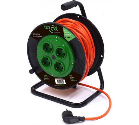 Покупал папе в подарок, замечательная катушка, 50м достает куда угодно, от гаража и по всему участку, крепкая металлическая катушка, хороший провод с толстой изоляцией, оранжевого цвета специально, что бы бросался в глаза. Плотное крепление вилки в четырех розетках. Советую к покупке.