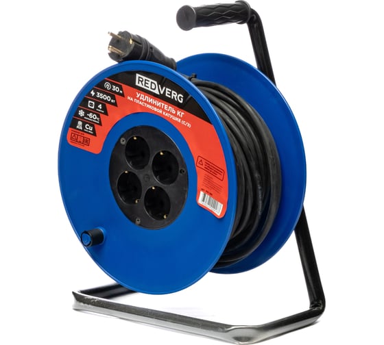 Удлинитель силовой REDVERG морозостойкий КГ на пластиковой катушке, 4 розетки, 3500Вт 50м (с/з) 00006696518