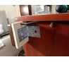 Брал для крепления розетки между двумя секциями письменного стола.