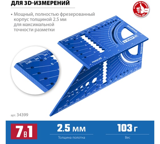 Универсальный алюминиевый угольник для 3D заготовок ЗУБР 7-в-1 34399