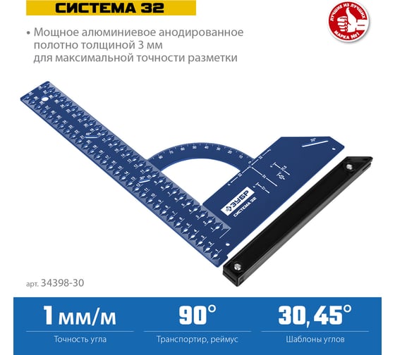Разметочный мебельный угольник ЗУБР Система-32 34398-30
