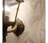Пластиковый светильник. Достаточно хрупкое стекло. Светильник крепится к скобе, фиксируется гайками. К бронзовому светильнику в комплекте серебристые гайки (( Купили здесь же , на всех инструментах колпачковые М4. Поменяли, совсем другое дело. На 1 и 2 фото слева штатная гайка, справа - золотая колпачковая. На 3-м фото - обе колпачковые. Покупали в прихожую, для освещения перед дверью - для этих целей светильник не подойдёт, будем менять. Вниз световой поток перекрыт основанием светильника.