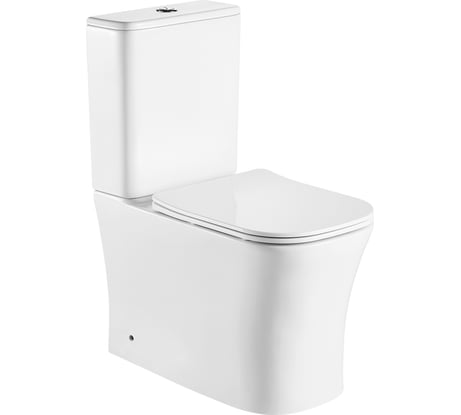 По отношению к обычным (советским) унитазам - безободковый, форма современная, комплектация