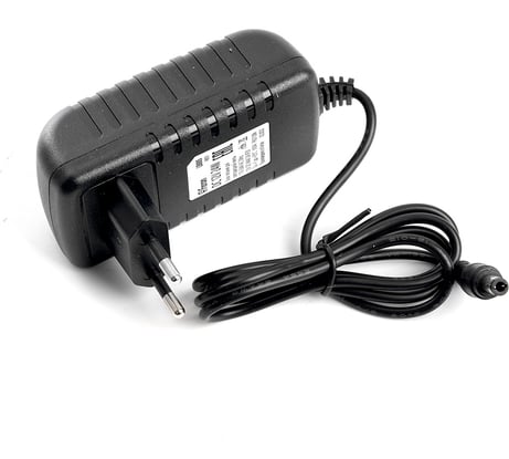 На первом фото: комплектация (коробка, инструкция, адаптер) На втором: напряжение 12,5 вольт На третьем: внешний диаметр разъёма 5,4 мм. На четвертом: внутренний диаметр разъёма 2,5 мм.