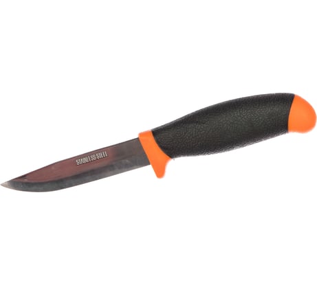 Дешевая вариация на тему моры-511. Понравилось, что в отличие от линейки мор тут одновременно клинок 100 мм и внятный упор - мора почему-то упоры делает только с 90-мм клинками. Ножны - печаль. В целом те же моровские, но всё в деталях. Подвес сразу срезал, проще в кармане носить, благо нож легкий и некрупный. Но подвес и у мор убогий, тут они вровень идут. Ножны очень глубокие, с учетом прорезиненной рукояти - трение между рукоятью и ножнами изрядное. Поскольку ножны глубокие - наружу торчит огрызок рукояти, за который браться не особо удобно. Сделан на ножнах упорчик под большой палец - но такой рудиментарный, что толку от него никакого. В общем, доставать нож одной рукой не особо удобно. Качество изготовления так себе - острие ножа мало что криво выведено, оно ещё и согнуто было. Ладно, что загнуто было - сточил, а что острие не по центру - пофиг, на использование не влияет. На режущей кромке пара заминов была у основания клинка - пофиг, поправил несколькими движениями. Металл очень мягкий, что от дешевой нержавейки ожидаемо. Как по мне - лучше бы делали клин не из дешевой нержавейки, а из такой же дешевой инструментальной стали, всё получше держалась бы заточка. Сведение в ноль или около того. Рукоять (довольно объемная, кстати) покрыта резиной или чем-то подобным - в ладонь практически влипает. Как по мне - совершенно лишняя фича, потому что в передней части рукоять имеет упор, в тыльной - "клюв" (хотя лучше бы побольше был, как на море-511), то есть ни вперед ни назад нож не проскользнул бы хоть с резиновым покрытием, хоть без него. А в целом - ну да, дешевый универсальный нож, своих денег стоит однозначно.