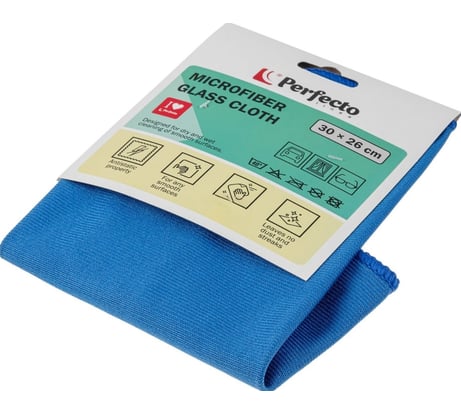 Отзыв Салфетка из микрофибры PERFECTO LINEA Solid (Cолид) 1 шт, 30x26 см, для стекол и зеркал 45-300111