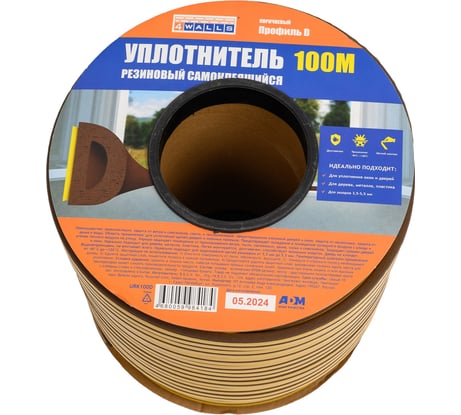 Отзыв Уплотнитель резиновый D-профиль 4walls 8x9 мм, 100м, коричневый, 124848