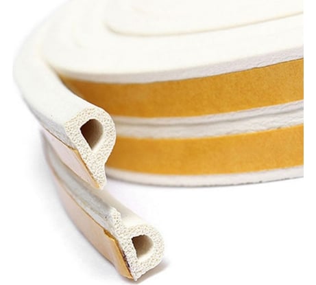 Недорогая клейкая уплотнительная лента, с гладким полиуретановым буртиком. Внешний вид и упаковка показаны на фотографии