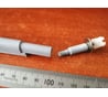 Неплохие и реально дешёвые толкатели, усилие пружины около полутора килограммов. Длина хода штока 40мм. На конце штока магнит с удержанием в ~300 граммов. Возможность регулировки в пределах 3мм, но т.к. резьба без стопоров - понадобится фиксатор резьбы что бы настройка не сползла. Удобно устанавливать благодаря бортику на конце монтажной площадки, вровень с ним встаёт шток (с полностью вкрученным регулятором) при нажатии. Если бортик не нужен, можно срезать любым ножом. Поставляется в пластиковом запаянном пакете. В комплекте пластиковый забивной дюбель для крепления ответной площадки (которая представляет из себя саморез под крест (филипс) с большой шляпкой). Диаметр ответной площадки 15мм, диаметр головки штока толкателя 5мм. Длина толкателя в сложенном виде (с монтажной площадкой) 85мм. В разложенном от 125мм до 128мм в зависимости от регулировки. Высота толкателя от поверхности установки 15мм.