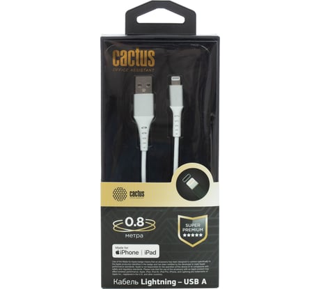 Отзыв Кабель CACTUS CS-LG.USB.A-1.2 USB (m)-Lightning (m) 1.2м белый блистер 1723680