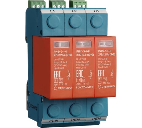 Отзыв об устройстве защиты от импульсных перенапряжений Стример РИФ-Э-I+II 275/12,5 с (3+0) 113102