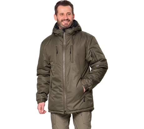 Тёплая, длинная, непродуваемая, 5 карманов, меховой воротник, регулируемый капюшон. Отличное соотношение цена/качество.