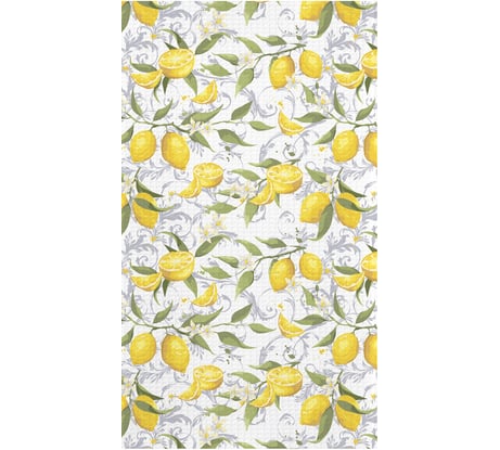 Полотенце нарядное, при этом не аляповатое, пожалуй, даже стильное, что встречается нечасто. Очень оживляет интерьер. Симпатично смотрится в качестве декоративной салфетки на стиральную машину. Лимончики такие яркие, что апельсины вполне могут позавидовать. Материал не толстый, однако достаточно плотный, После ручной стирки в прохладной воде цвет полностью сохранился.