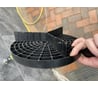 Норм. на ножках (ребрах). Влазит в большие строительные Ведра. На фото большое ведро и то не на дне стоит а в распор. Есть дырки в центре под пальцы, выдернуть