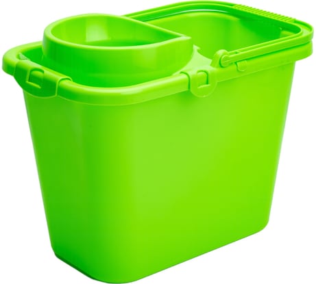Налить воды, чтобы она не касалась отжима, можно только меньше половины. При первой попытке отжать швабру, отжим провалился в ведро. Вторая попытка закончилась тем же.